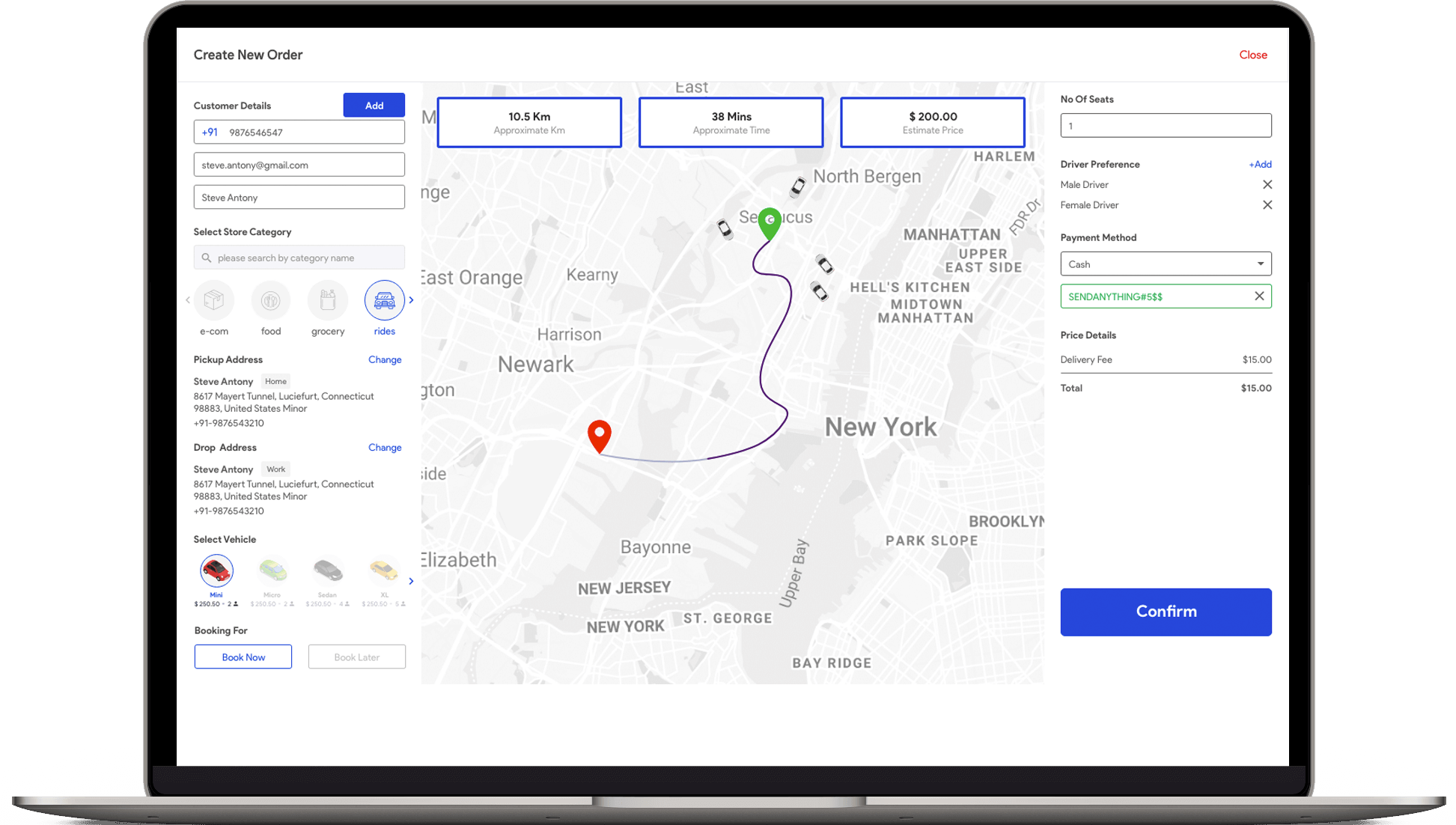 Advance admin panel to aid in real time customer support and real time driver activity tracking.